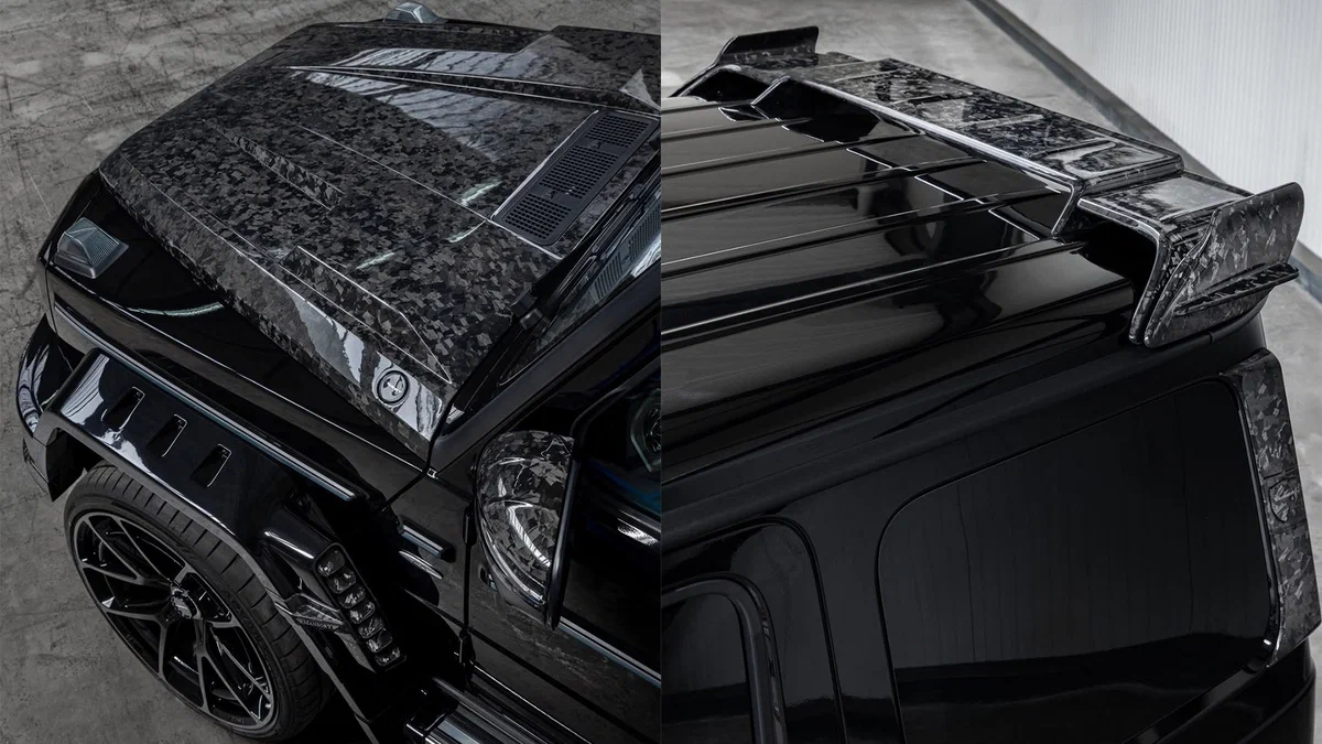 Дополнительные вентиляционные отверстия разместились на расширителях колёсных арок. На крыше появились световая балка и антикрыло с эффектными законцовками, а на корме — заметный диффузор. Автомобиль установлен на 24-дюймовые колёсные диски, а тормозные суппорты окрашены в синий цвет — символ электрической природы модели. Аналогичные синие вставки украшает и боковую часть кузова.