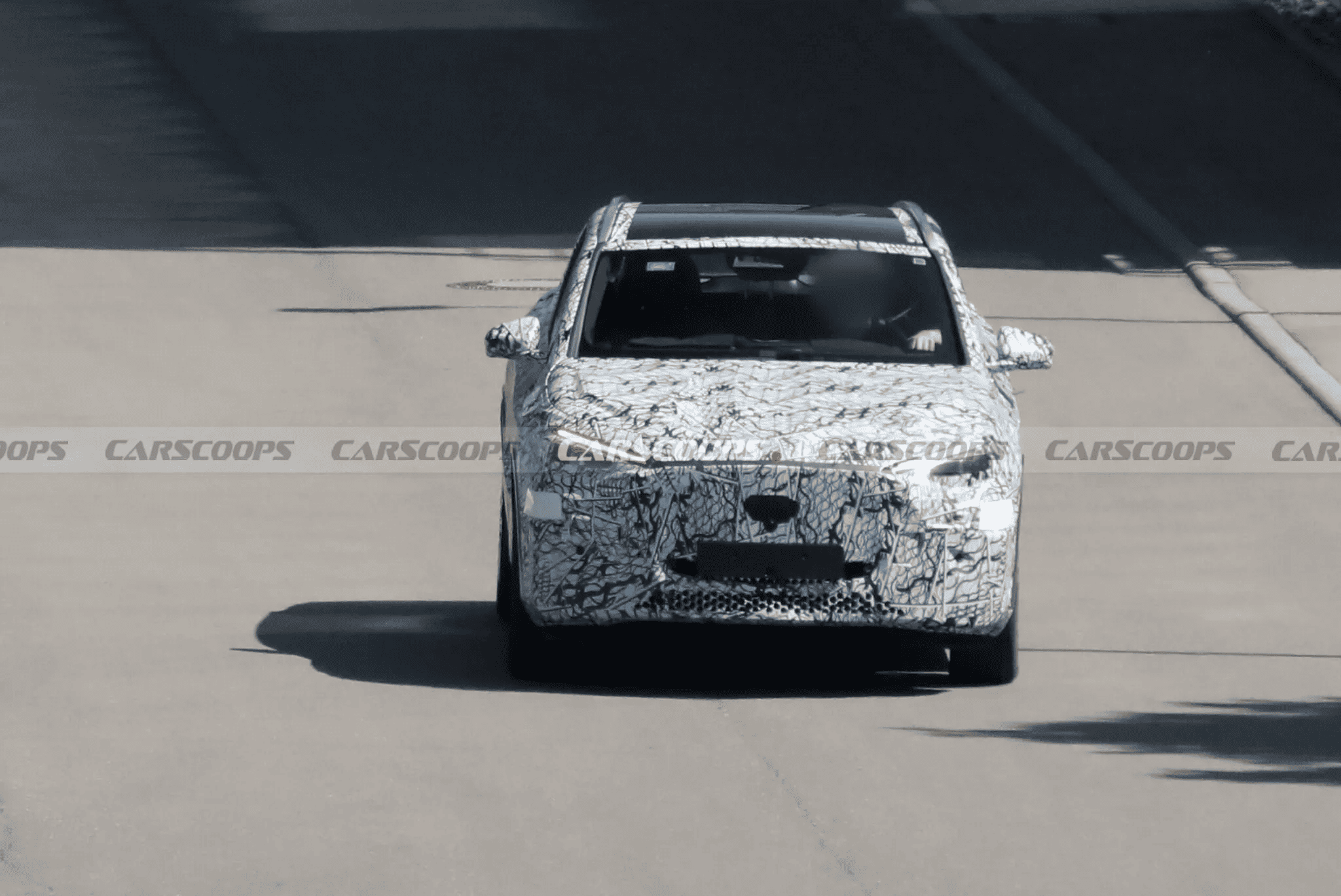 Прототип, облаченный в тяжелую камуфляжную пленку, похоже, оснащен полностью закрытой решеткой радиатора, обрамленной угловатыми фарами. Мы также можем заметить узкие воздухозаборники и более выразительный передний бампер.