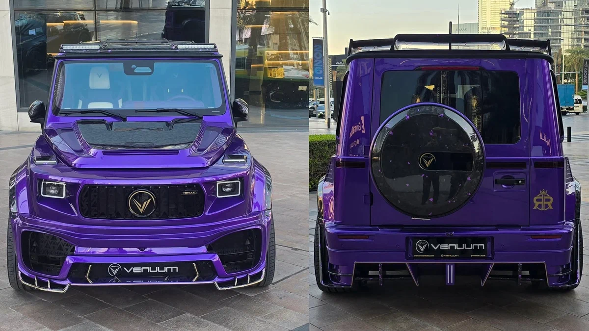 Дубайское ателье Venuum представило эксклюзивный тюнинг‑проект на базе Mercedes‑AMG G 63 под названием Mastodon. Всего будет выпущено лишь 50 экземпляров этого уникального внедорожника, при этом официальная стоимость модификации пока не разглашается. Главные изменения коснулись внешнего облика автомобиля: тюнеры полностью переработали переднюю оптику, заменив штатные круглые фары на кастомные прямоугольные блоки в индивидуально спроектированных корпусах. Переднюю часть дополнили альтернативным бампером с внушительными воздухозаборниками и сплиттером, а также новой решёткой радиатора с фирменным логотипом ателье. Бодикит включает расширители колёсных арок в сочетании с новыми крыльями, массивные накладки на пороги, антикрыло и задний бампер с крупным диффузором. Кроме того, были заменены задние фонари, а на крыше появились световая балка и антикрыло. В салоне произведена полная перешивка с использованием новой кожи в сочетании фиолетового и кремового оттенков, интерьер обильно украшен оригинальным узорчатым декором. Примечательно, что ателье Venuum уже применяло схожий дизайнерский подход в другом своём проекте — доработанном Rolls‑Royce Dawn (о нём стало известно в конце прошлого года), где использовался уникальный орнамент в виде треугольников. Как и в случае с Rolls‑Royce Dawn, тюнеры не стали вносить изменения в силовой агрегат Mercedes‑AMG G 63, сосредоточившись исключительно на визуальной трансформации автомобиля.