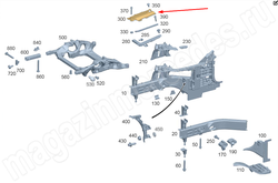 Усилитель чашки передней амортизационной стойки к лонжерону слева