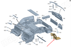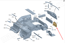 Крепление поперечина днища задней части кузова справа
