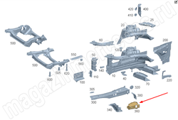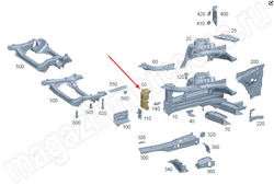 Соединительный несущий элемент переднего лонжерона сверху слева
