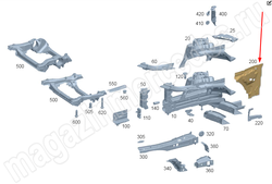 Соединительный несущий элемент переднего лонжерона сверху справа