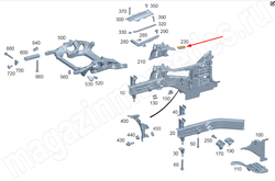 Опора продольного несущего элемента спереди снизу слева