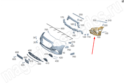 Декоративная планка переднего бампера сверху слева Mercedes