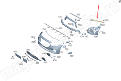 Базовая опора переднего бампера посередине снизу