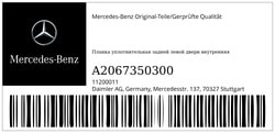 Планка уплотнительная задней левой двери внутренняя Mercedes C Class W206