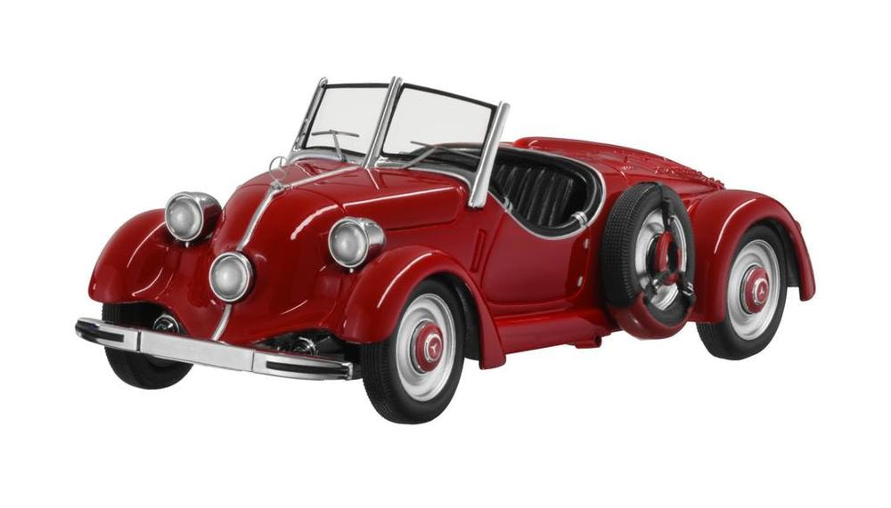 Модель 150 спортивный родстер, W 30, 1935. Цвет: красный. Материал: полиуретановая смола. Масштаб: 1:43. Точное воспроизведение деталей и высококачественное исполнение салона. В презентационной коробке на подставке с надписью. Производитель: Minimax для "Мерседес-Бенц".