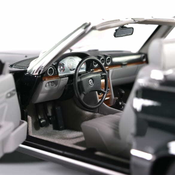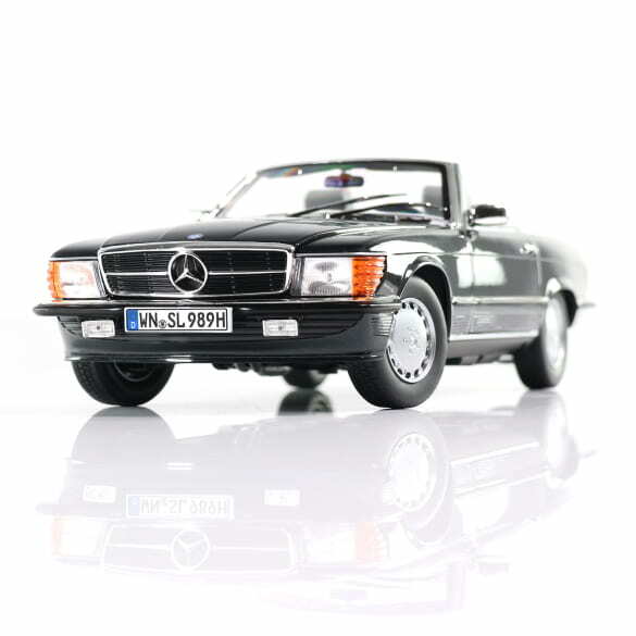 Нежный фейслифтинг, улучшенная передняя подвеска и измененная табличка двигателя: представленный в сентябре 1985 года на выставке IAA во Франкфурте, 300 SL R107 произвел впечатление полностью обновленной модели серии SL и стал настоящим рекордом производства в последующие годы. К августу 1989 года в Зиндельфингене было произведено в общей сложности 237 287 автомобилей серии SL 107. Собранная вручную точная модель этого спортивного родстера заставляет сердца коллекционеров биться быстрее. Он впечатляет не только лакокрасочным покрытием в аутентичном цвете, но и точной передачей всех деталей интерьера. Двери, капот и задняя дверь модели автомобиля открываются и открывают вид на качественный салон автомобиля. Съемный капюшон с мягким верхом дополняет оснащение. Модель автомобиля поставляется в упаковке Mercedes-Benz Classic, в комплект которой входит отвертка для удобного снятия и перчатка для защиты модели от отпечатков пальцев на стекле или окрашенном кузове.