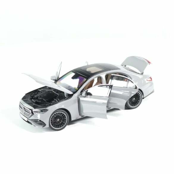 Оригинальная модель автомобиля Mercedes-Benz 1:18 E -Class W214 sedan в цвете alpine grey. В комплект входят отвертка и перчатка для безопасного извлечения модели из упаковки.