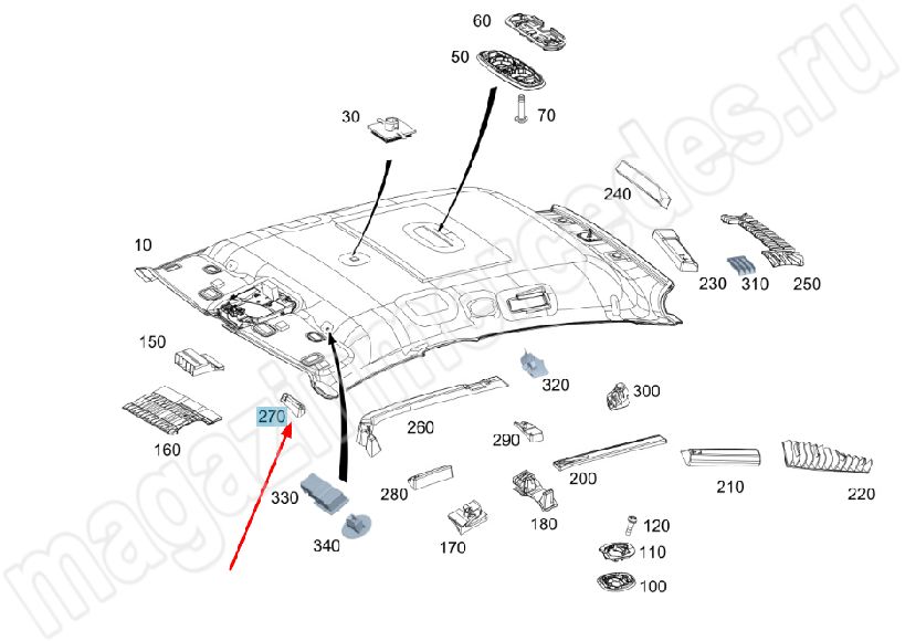 Абсорбер крыши спереди справа Mercedes
