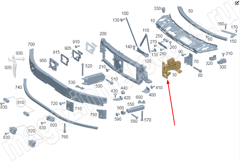 Элемент жесткости спереди и кронштейн радиаторов