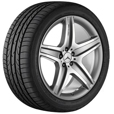 Колесный диск AMG с 5 спицами. Параметры диска: 10 J x 21 ET 37 (21 дюйм). Цвет: Серебристый. Рекомендуемая резина: 295/40 R21. Мост: Передний-Задний мост.