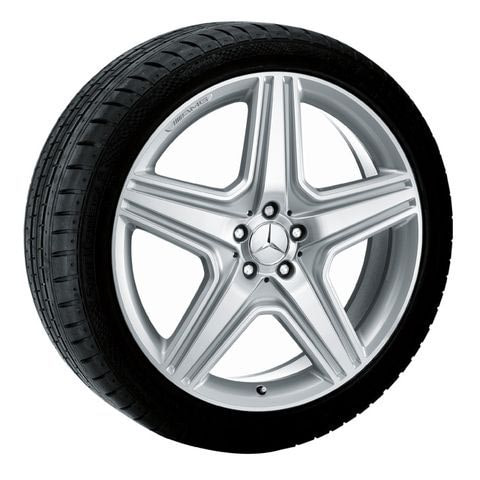 Колесный диск AMG с 5 спицами. Параметры диска: 9 J x 21 ET 60 (21 дюйм). Цвет: Серебристый. Рекомендуемая резина: 265/40 R21. Мост: Передний мост.