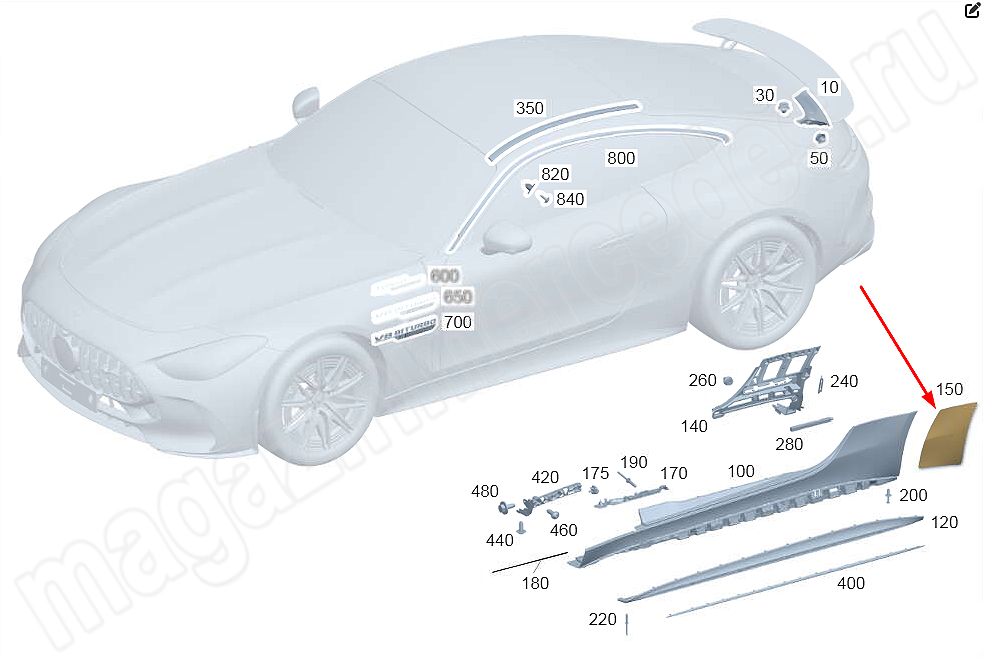 Антигравийная защитная пленка облицовки порога слева Mercedes AMG GT C192