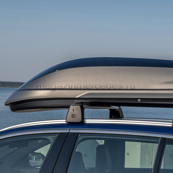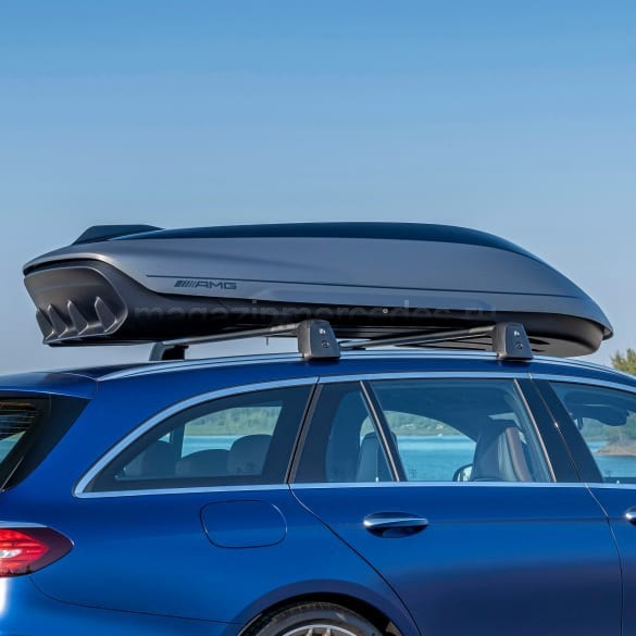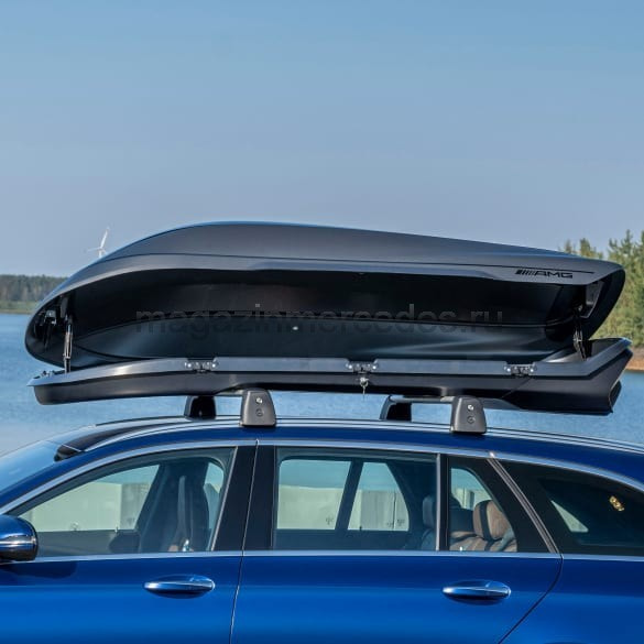 Инновационный аэродинамический дизайн багажного бокса на крыше Mercedes-AMG олицетворяет эксклюзивность и спортивность модели. Двухцветный дизайн и ребро на крышке создают интересную игру света и тени и подчеркивают выразительность дизайна AMG. Благодаря конструкции багажного бокса на крыше Mercedes-AMG с двумя вариантами диффузоров достигаются оптимальные результаты с точки зрения аэродинамики, ходовых качеств и шумового фона. Быстросъемная система упрощает монтаж. Объем около 410 литров. Максимальная нагрузка: 70 кг. Необходимо учитывать нормативную нагрузку на крышу автомобиля.