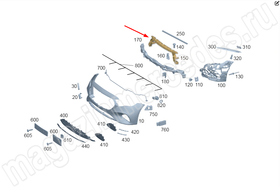 Базовая опора переднего бампера посередине сверху Mercedes E Class W214