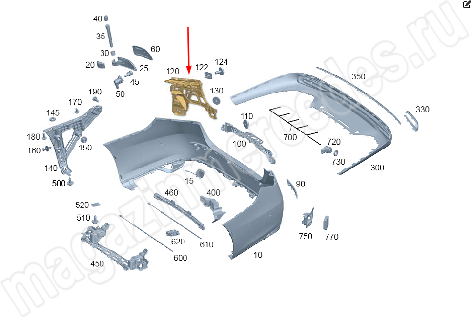 Базовая опора заднего бампера слева Mercedes E Class W214