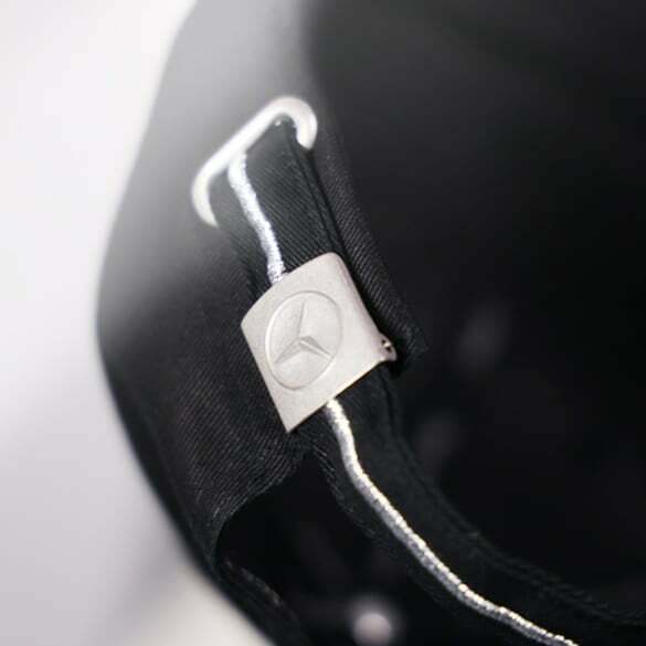 Идеальный спутник на каждый день: черная бейсболка унисекс с элементами контрастного серебристого цвета. Изготовленная из хлопка и твилла, она отличается высоким комфортом ношения и оптимальной посадкой в любую погоду. Благодаря застежке с логотипом «Мерседес-Бенц» можно регулировать размер бейсболки. Вышитая звезда «Мерседес-Бенц» серебристого цвета впереди завершает дизайн. - Цвет: черный - Материал: хлопок - Регулировка размера
