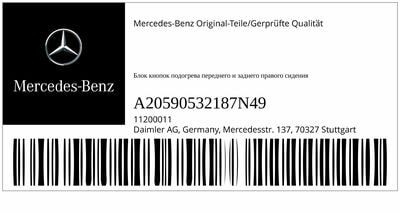 Блок кнопок подогрева переднего и заднего правого сидения Mercedes EQC N293