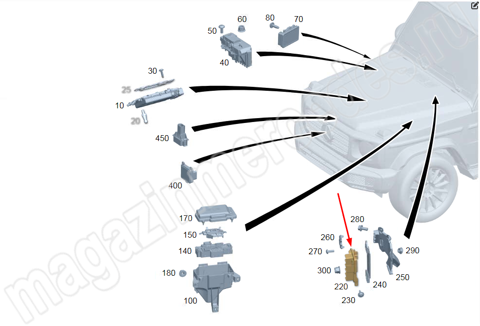 Блок предохранителей 48V в моторном отсеке Mercedes G class W465
