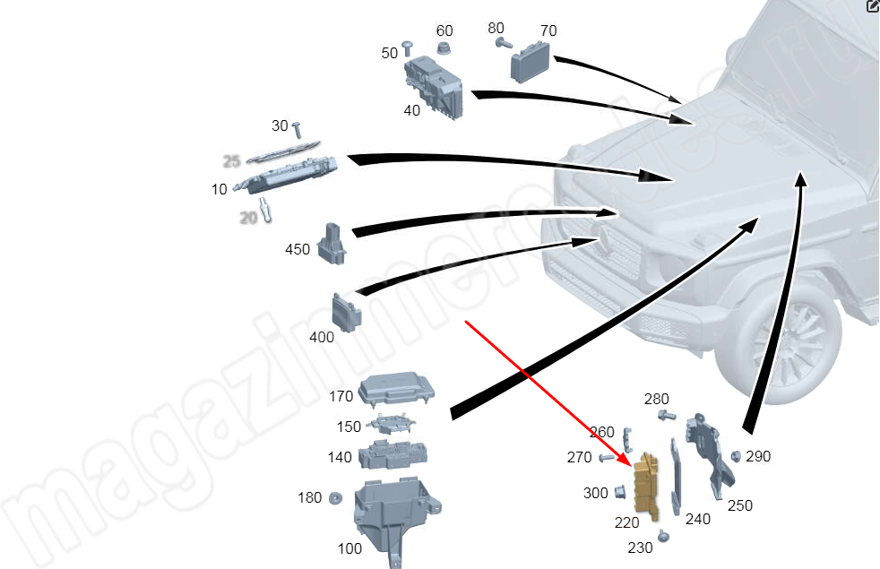 Блок предохранителей 48V в моторном отсеке Mercedes G class W465