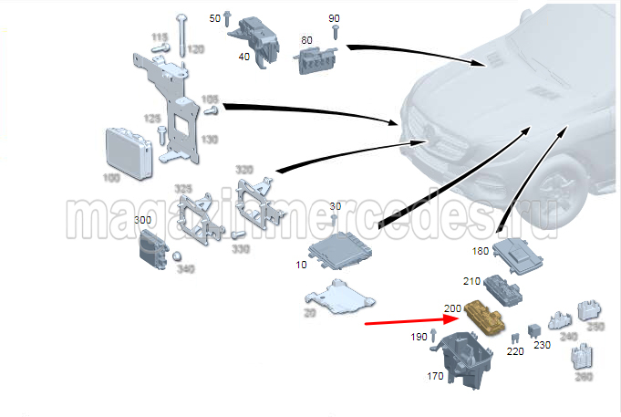 Блок предохранителей в моторном отсеке Mercedes C Class W206