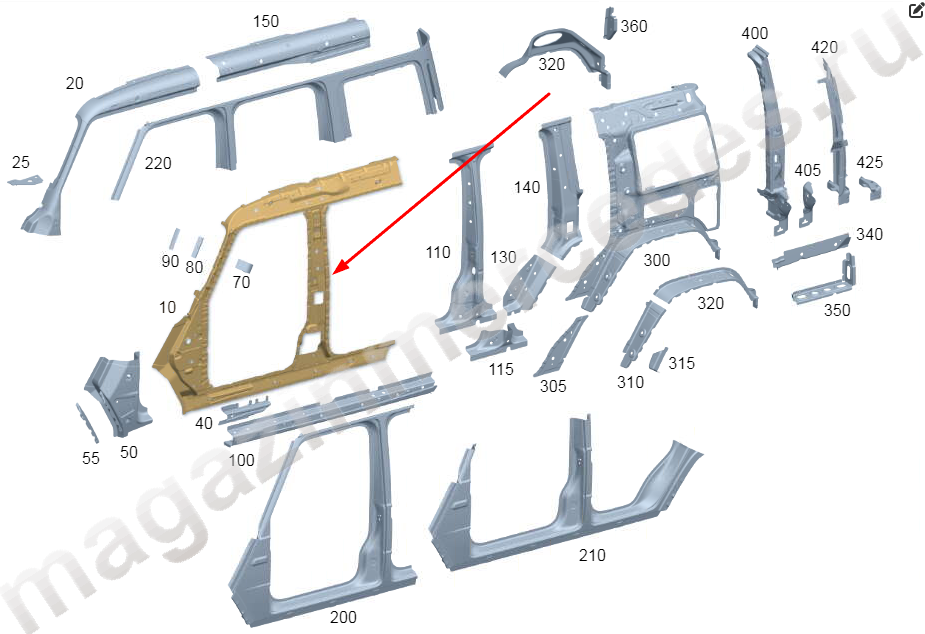 Боковина кузова левая Mercedes