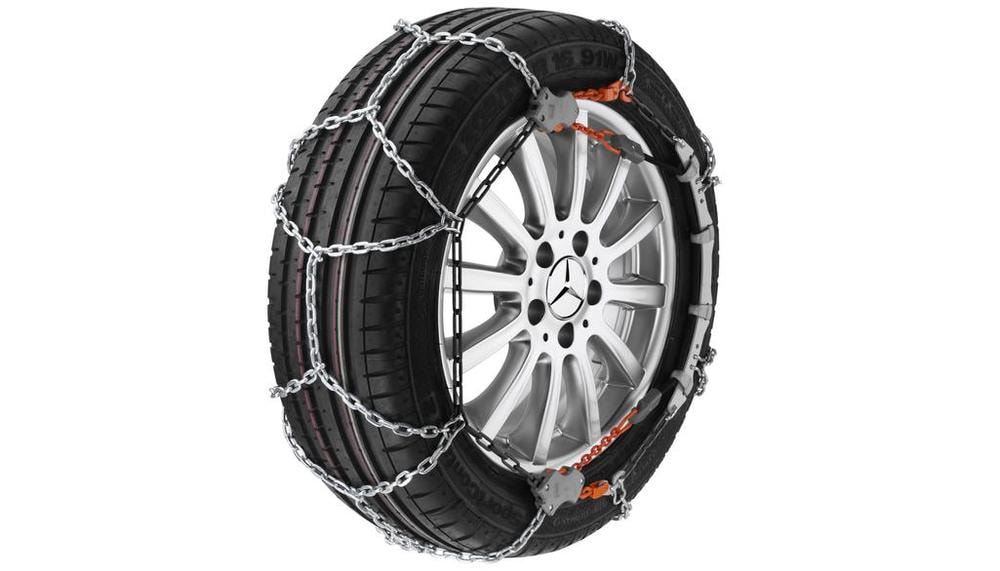 Цепи противоскольжения с долгим сроком службы быстро устанавливаются и снимаются на стоящем автомобиле.