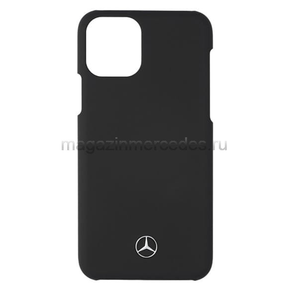 Черный чехол для iPhone® 11 Pro защищает корпус iPhone от случайных царапин. Практичные вырезы для камеры, кнопок управления и разъемов обеспечивают неограниченное использование всех функций смартфона. Чехол подходит для беспроводной зарядки и украшен объемной звездой Mercedes-Benz.