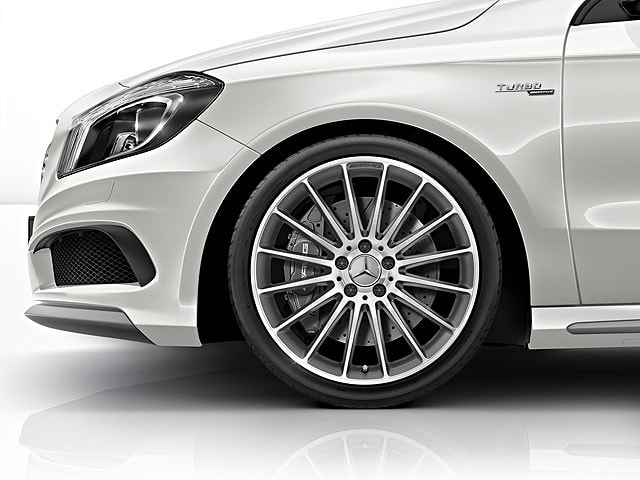 Многоспицевый колесный диск AMG. Параметры диска: 8 J x 19 ET 48 (19 дюймов). Цвет: Серый титан. Материал: Алюминий. Рекомендуемая резина: 235/35 R19. Мост: Передний-Задний мост.