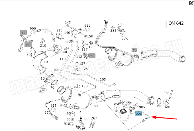 Датчик оксидов азота NOX sensor задний A0009053606 A000905151287