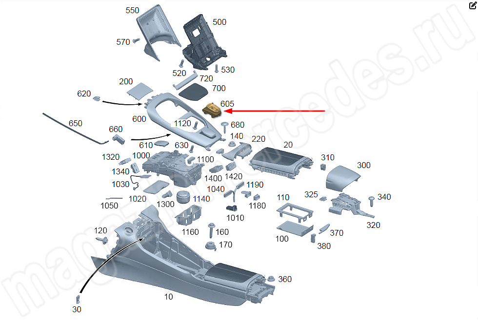 Декоративная накладка центральной консоли Mercedes Sl class R232