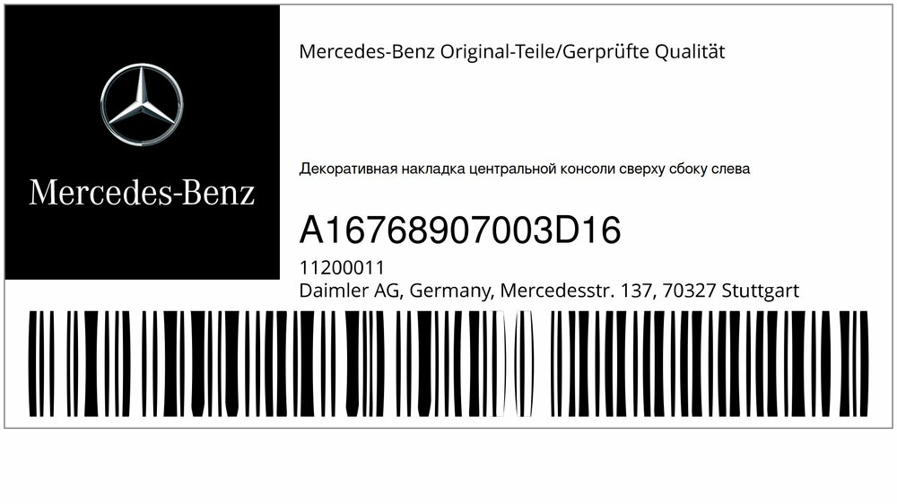 Декоративная накладка центральной консоли сверху сбоку слева Mercedes GLE Class V167