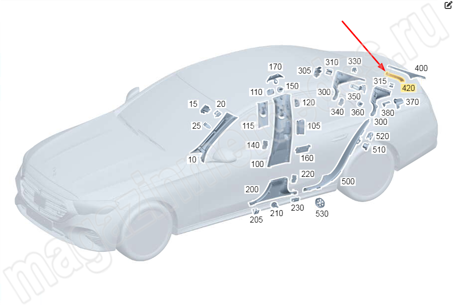 Декоративная накладка, шторка внизу слева Mercedes E class W214