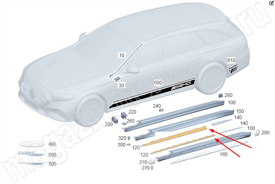 Декоративная планка облицовки порога сзади слева Mercedes E Class W214