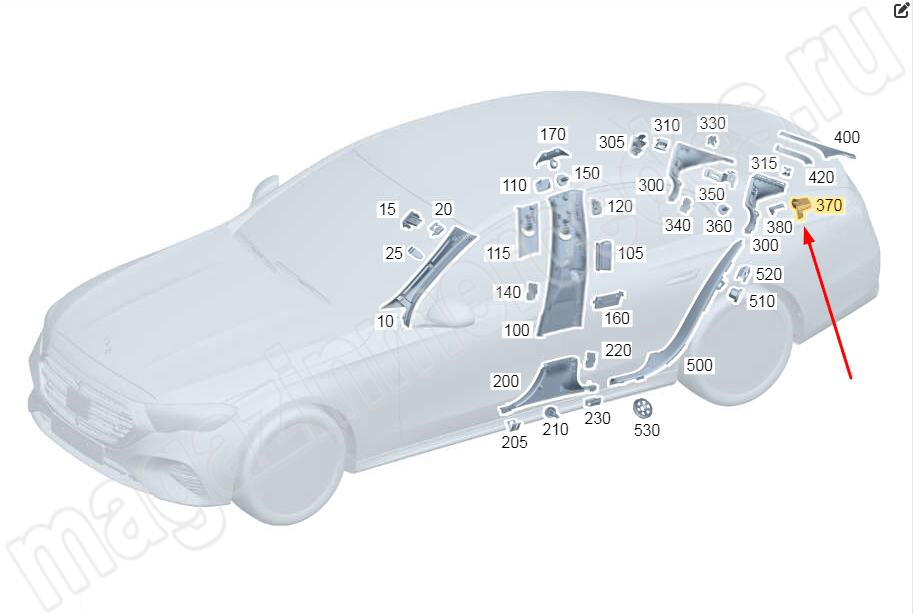 Декоративная розетка в задней стойке кузова вверху слева Mercedes E Class W214