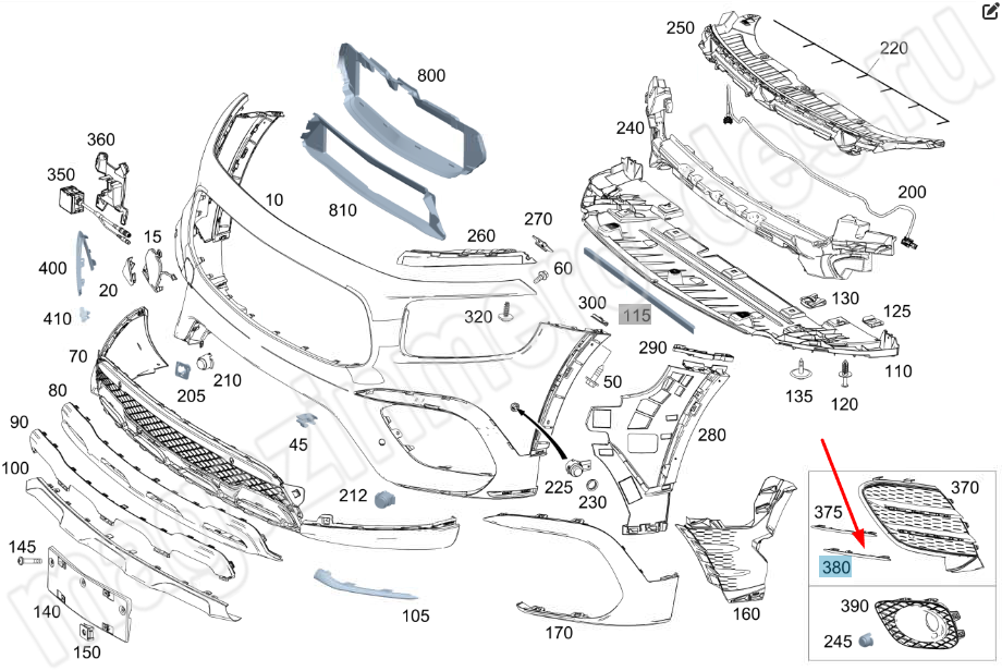 Отзывы - Декоративный элемент решетки переднего бампера нижний справа MercedesОставить отзыв