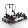 Для безопасной транспортировки 3 велосипедов. Складное, компактные размеры (ширина х глубина х высота) 64,5 см х 73,5 см х 47 см. С замком для защиты от кражи. Очень удобно: съемное и устанавливаемое в любом положении крепление для велосипедов с быстродействующим затвором. Удобные роликовые направляющие для максимального вытягивания (доступ к багажнику), включая безопасную разблокировку и удобную ножную педаль для снятия / загрузки груза. Прочная стальная рама. Приспособление для снятия / загрузки, направляющие для установки велосипедов, крепежные скобы и крепление для велосипедов из алюминия. Откидные крепежные скобы с быстродействующим затвором. Удобные лотки для колес с быстрой регулировкой и стяжными ремнями с «парковочной позицией» для стяжных ремней. Удобная и оправдавшая себя в эксплуатации шаровая головка для максимальной безопасности. Максимальная нагрузка: 54 кг.