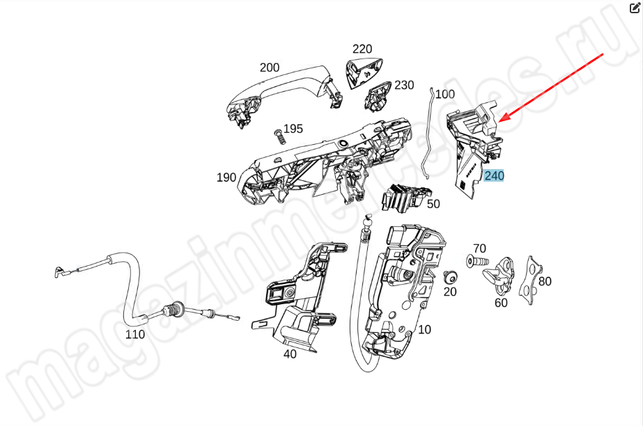 Держатель опорной скобы замка передней левой двери Mercedes GLB X247
