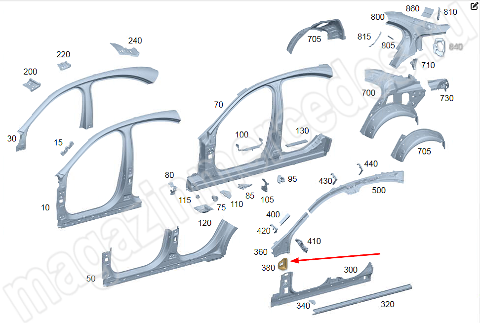 Держатель передней стойки изнутри справа Mercedes E Class W214
