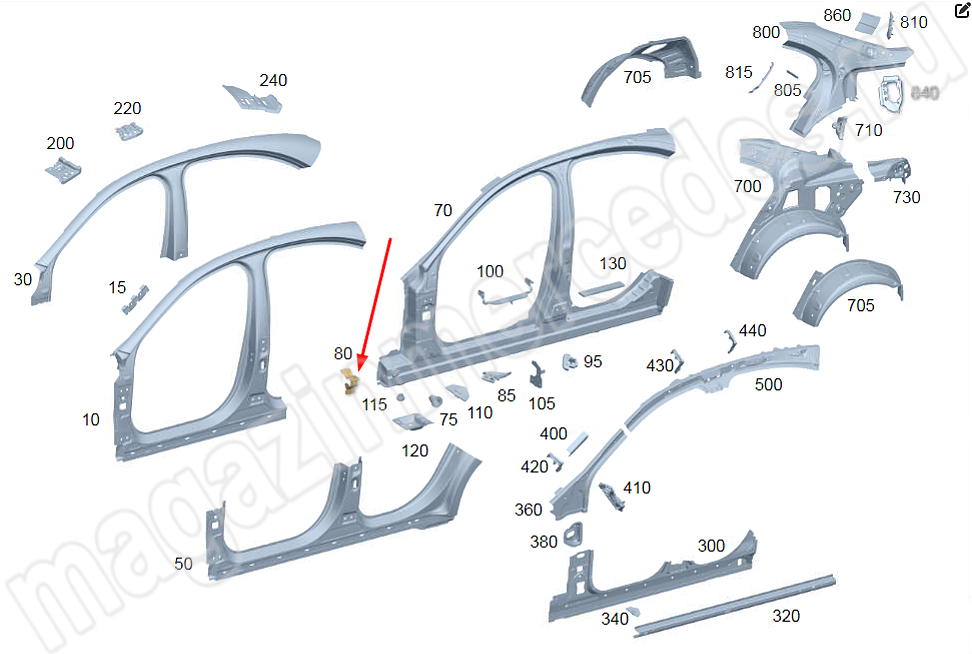 Держатель продольного несущего элемента спереди снаружи слева Mercedes E Class W214