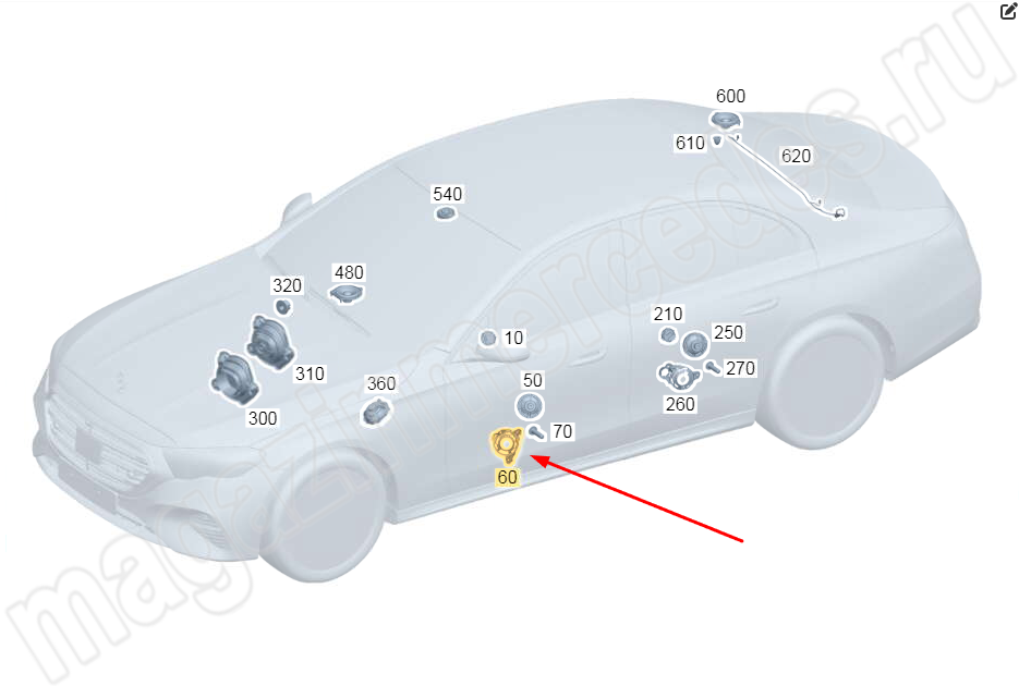 Держатель среднечастотного динамика в передней левой двери Mercedes E Class W214