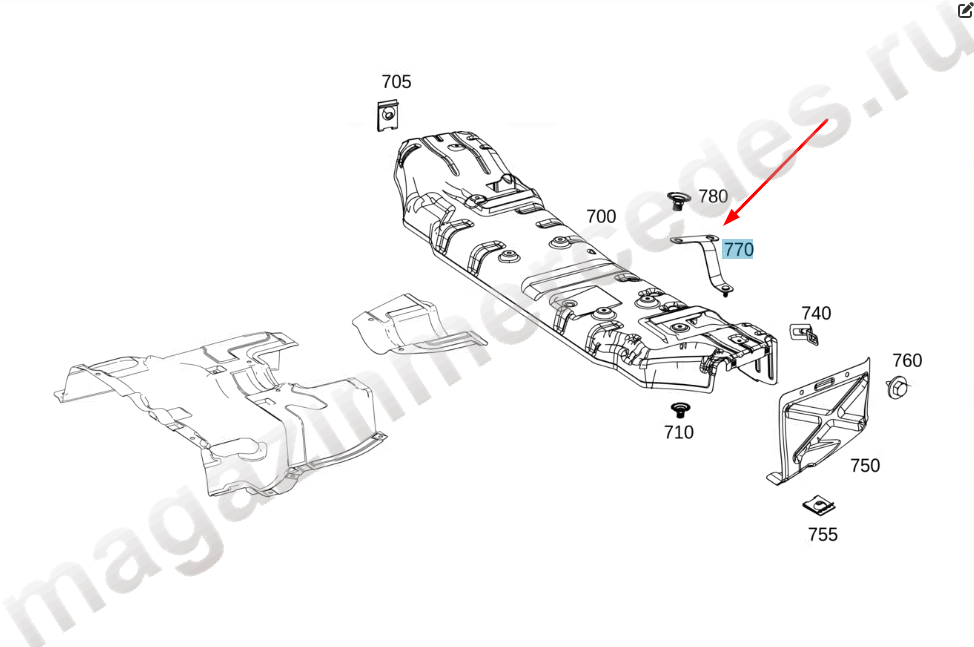 Держатель теплового экрана к заднему лонжерону Mercedes GLE Class V167