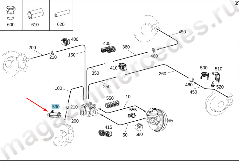 Держатель тормозного шланга спереди справа Mercedes GLE Class V167