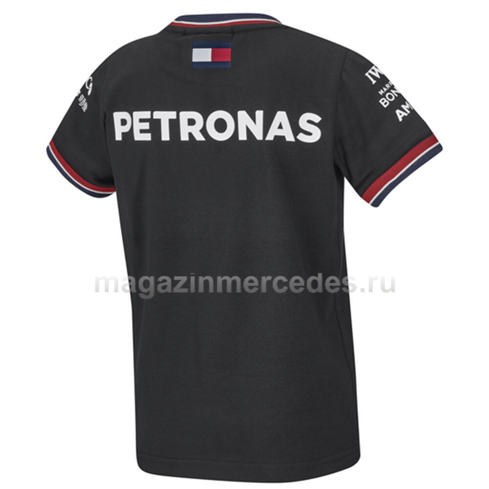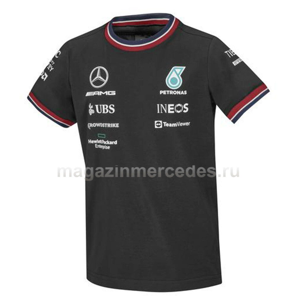Детская футболка AMG Petronas Formula 1 черная из натуральной кожи Mercedes-Benz рост 152 см