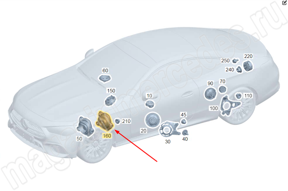 Динамик Frontbass, в пространстве для ног водителя Mercedes E Class W214