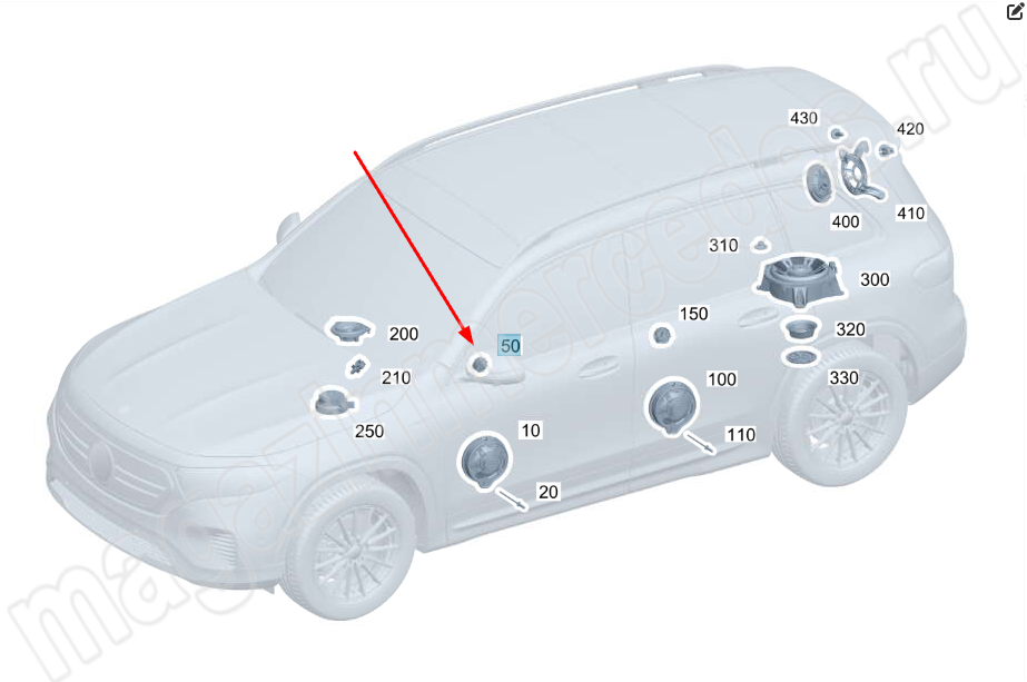 Динамик в передней стойке слева и справа Mercedes GLB X247