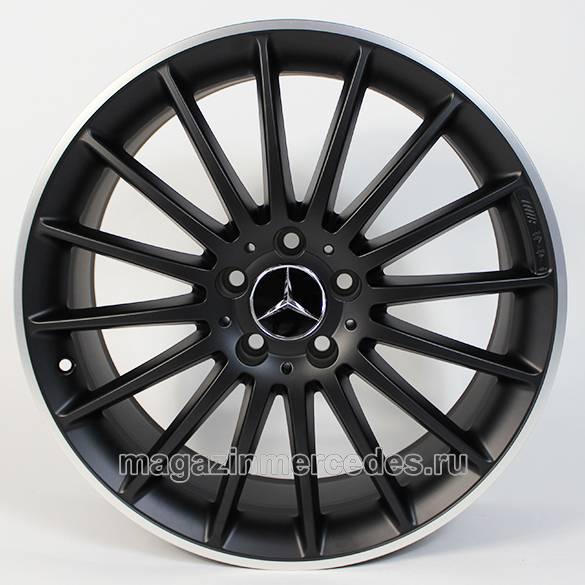 Многоспицевый колесный диск AMG. Параметры диска: 8 J x 19 ET 48 (19 дюймов). Цвет: Черный матовый. Материал: Алюминий. Рекомендуемая резина: 235/35 R19. Мост: Передний-Задний мост.