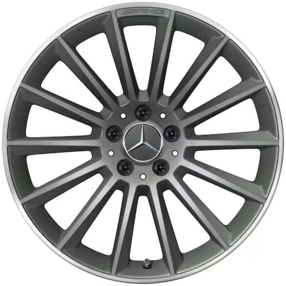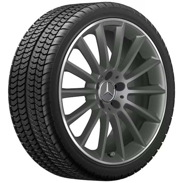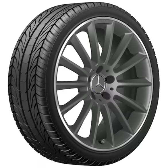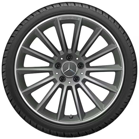 Колесный диск AMG многоспицевый. Параметры диска: 8 J x 19 ET 40 (19 дюймов). Цвет: Серый титан. Материал: Алюминий. Рекомендуемая резина: 235/35 R19. Мост: Передний-Задний мост.
